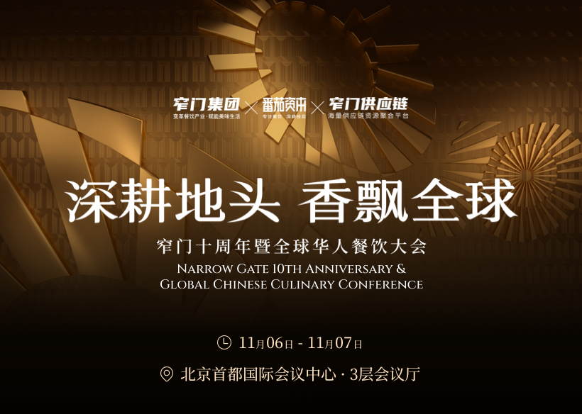 作为全球华人餐饮界年度盛典,“深耕地头·香飘全球”窄门十周年暨全球华人餐饮大会将于11月6-7日盛大召开。本次大会汇聚全球500+ 餐饮品牌掌舵者、供应链领军企业及行业专家,围绕 “中餐全球化”“餐饮品牌连锁发展”等核心议题,深度探讨食材溯源、标准化生产、全球化布局等前沿趋势。